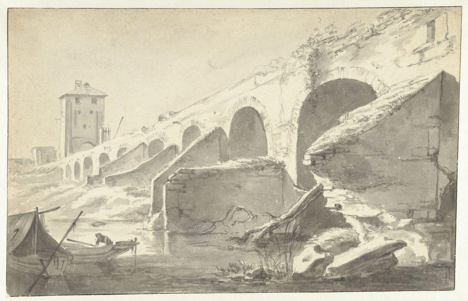 Jan Asselijn. Le pont du Rhône à Lyon vu de l’ouest (1646-50). Dessin sur papier, 26 ×40 cm, Rijksmuseum, Amsterdam. |