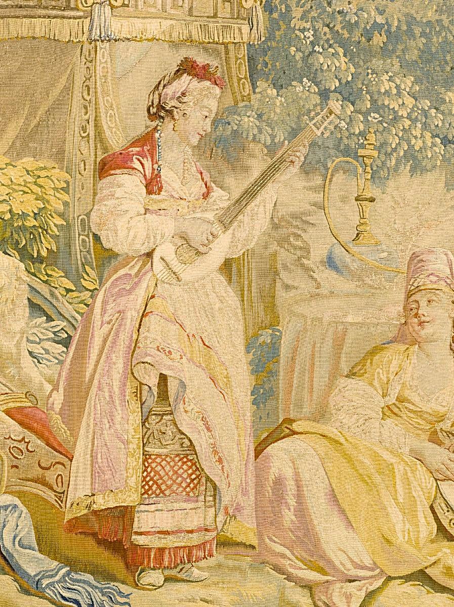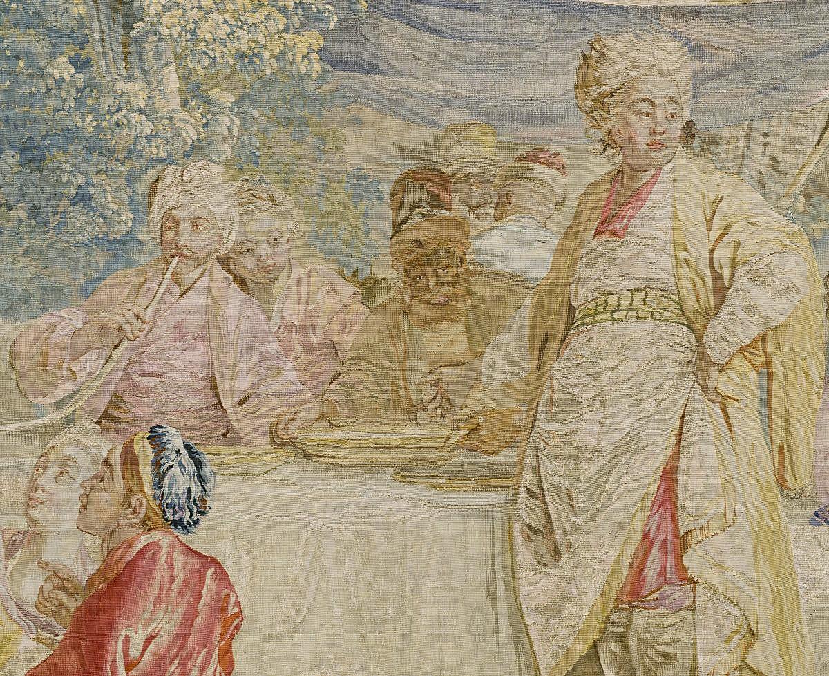 « Cette série comprenait à l'origine six sujets d'après les cartons de Jean-Baptiste Leprince, peintre et graveur (1733-1781). Elle fut tissée à la manufacture de Beauvais de nombreuses fois dans les dernières années du règne de Louis XV, sous celui de Louis XVI et jusqu'en 1793, sous la direction d'A. Ch. Charron à partir de 1769. » (Commentaire site Pop culture, ministère de la Culture)